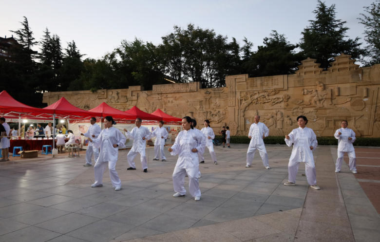在中医养生功法教习活动中,医护人员组成的方队为群众演示了传统中医养生功法八段锦。他们动作整齐划一,展现出八段锦的独特魅力。许多市民在医护人员的指导下,亲身体验了八段锦的锻炼方法,纷纷表示感受到了身心的放松和舒展。
