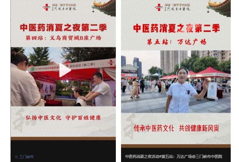 7月—8月,三门峡市中医院“中医药消夏之夜”系列文化集市活动分别走进陕州区甘棠公园和庙底沟遗址公园,开展了主题为“传承千年智慧,守护群众健康”的中医药文化服务月活动。
