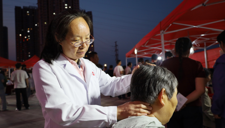 豫晋陕黄河金三角区域中医传承创新高质量发展大会义诊活动中,全国名中医崔应麟教授为当地百姓诊病。