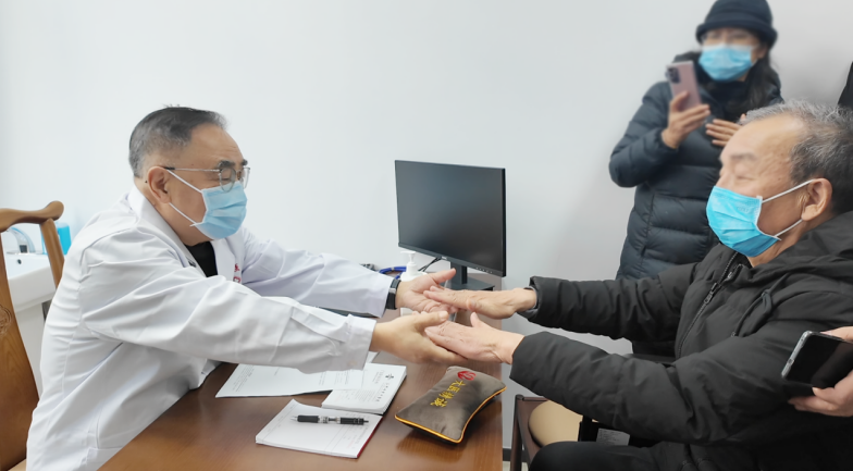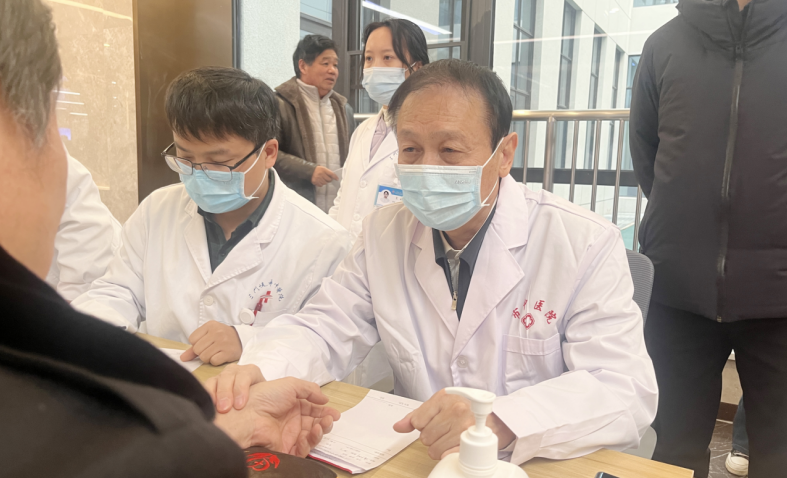 豫晋陕黄河金三角区域中医传承创新高质量发展大会义诊活动中,张伯礼院士为当地百姓诊病。