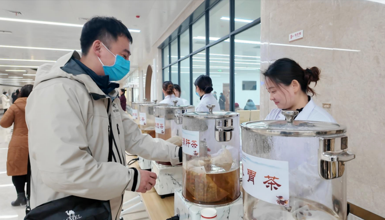 豫晋陕黄河金三角区域中医传承创新高质量发展大会会议现场,医院开设免费中药茶饮品尝。