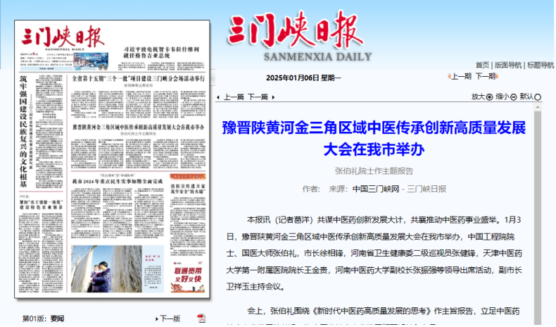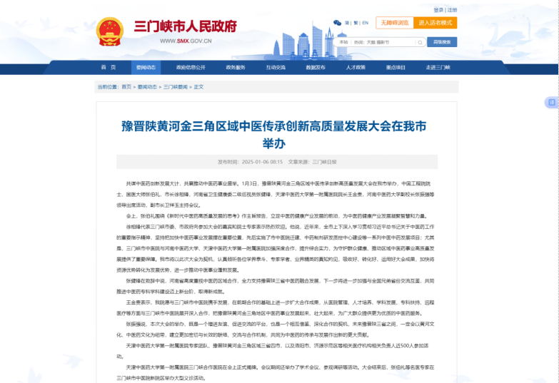 为进一步发扬中医药传承创新工作,提高豫晋陕黄河金三角区域医疗技术水平,促进医院高质量发展,满足人民群众就医需求,2025年1月2日,豫晋陕黄河金三角区域中医传承创新高质量发展大会在三门峡市天鹅城国际大酒店一楼黄河厅拉开帷幕。