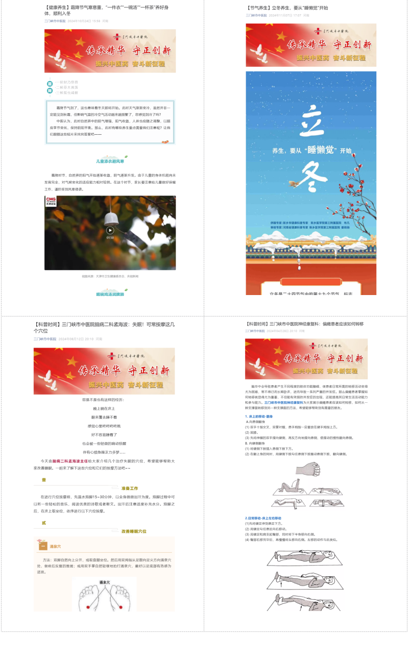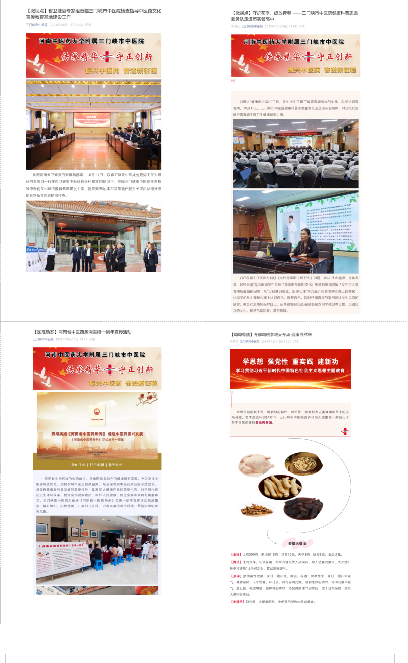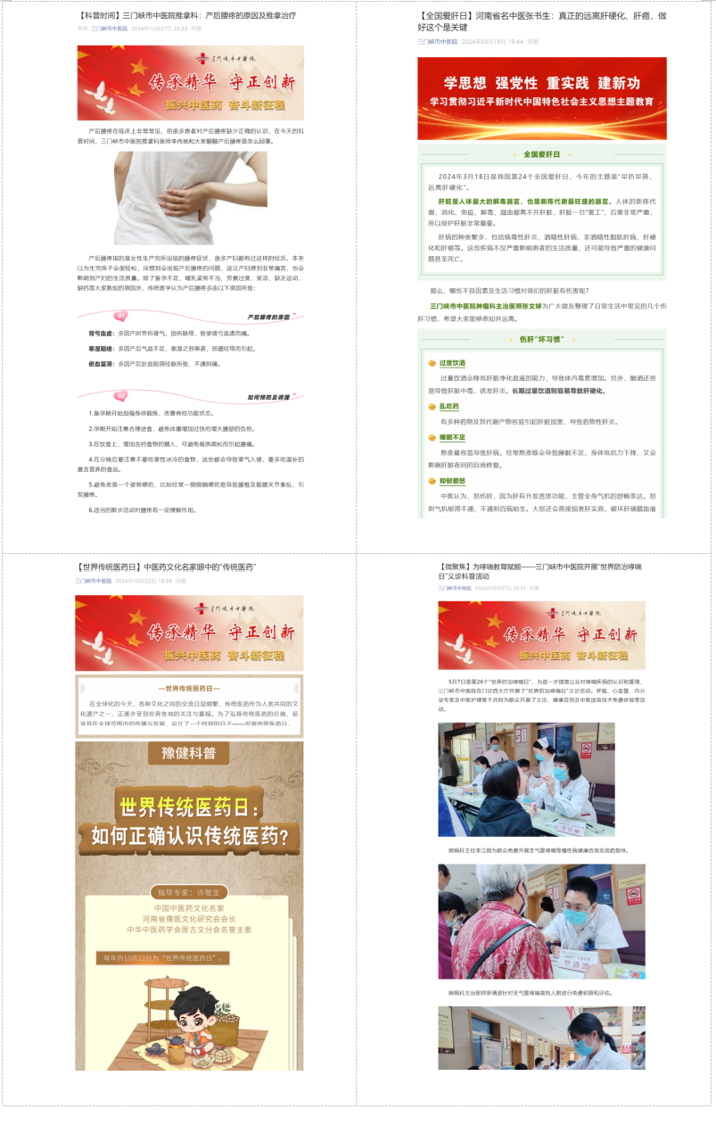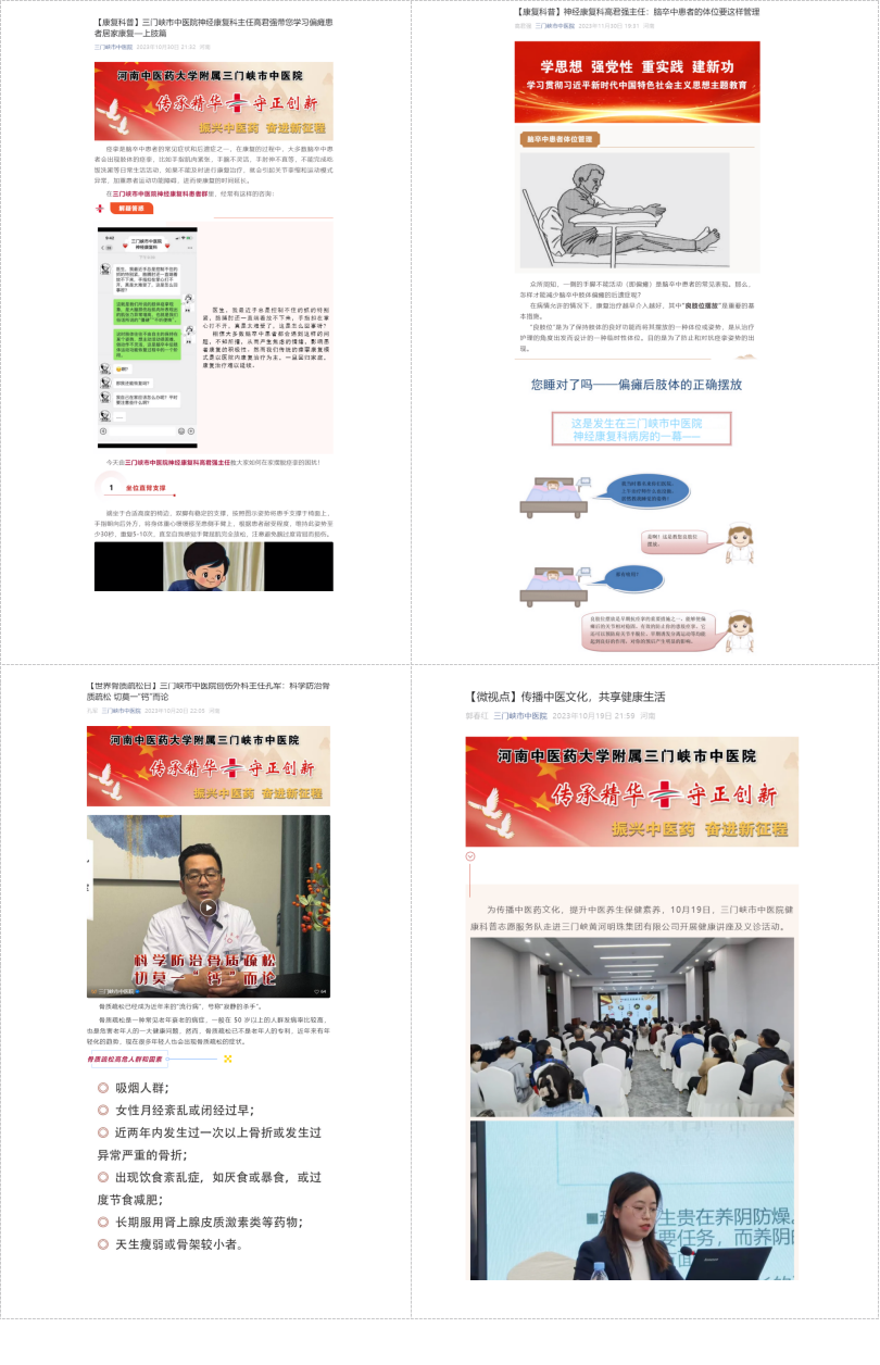我院深耕中医药文化传播与健康科普工作,积极搭建线上宣传矩阵,先后有25名专家入选三门峡市第二届卫生健康大讲堂讲师团,28名专家跻身河南健康促进与融媒体平台专家库。讲师团依托腾讯会议、医院微信公众号、视频号及抖音号等新媒体渠道,以群众喜闻乐见的形式开展中医药文化宣传教育活动,内容涵盖中医养生妙招、常见病辨证施治、中药科普解读等实用主题。