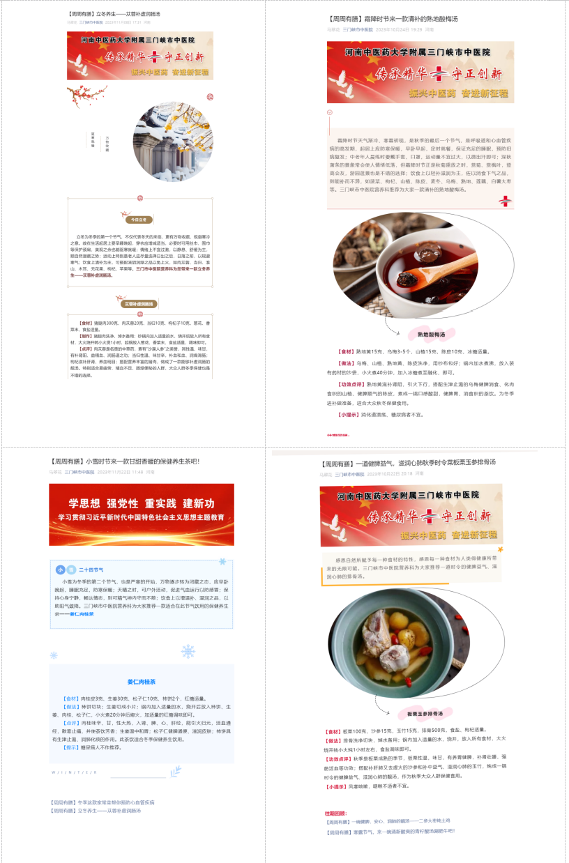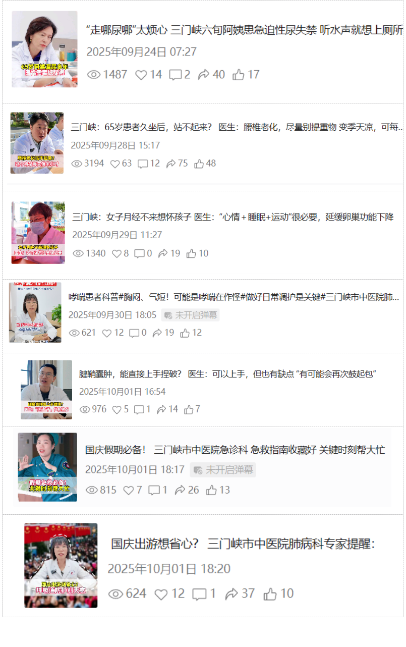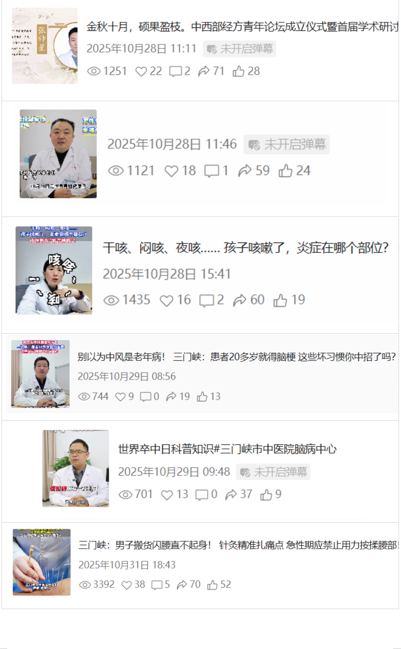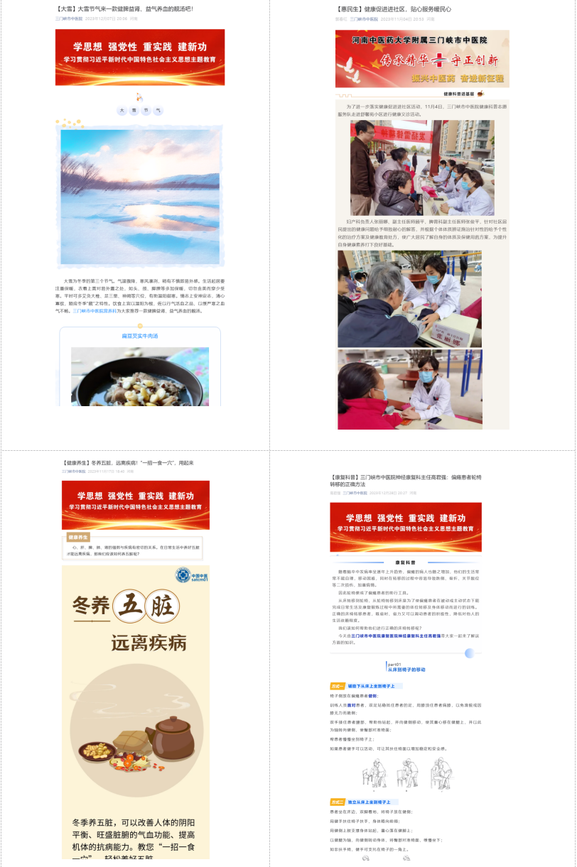 我院深耕中医药文化传播与健康科普工作,积极搭建线上宣传矩阵,先后有25名专家入选三门峡市第二届卫生健康大讲堂讲师团,28名专家跻身河南健康促进与融媒体平台专家库。讲师团依托腾讯会议、医院微信公众号、视频号及抖音号等新媒体渠道,以群众喜闻乐见的形式开展中医药文化宣传教育活动,内容涵盖中医养生妙招、常见病辨证施治、中药科普解读等实用主题。
