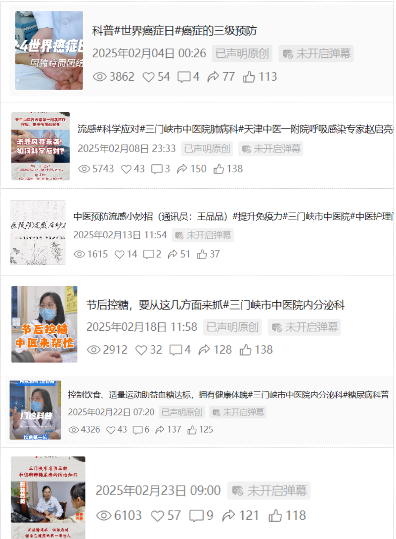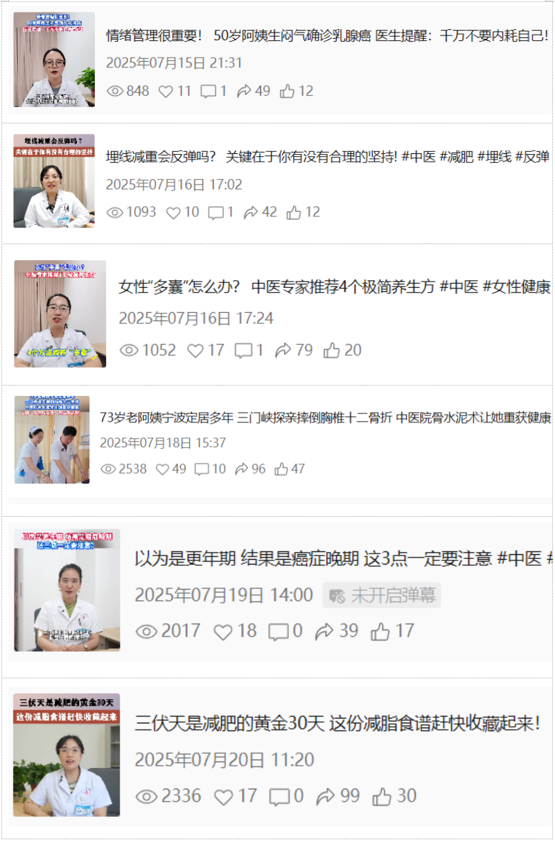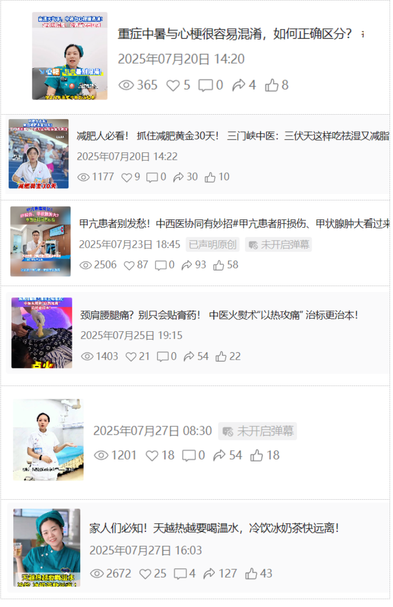 这一趋势既体现了我院对新媒体科普工作的持续投入,也反映了群众对中医药健康知识的需求日益旺盛,切实落实了“积极利用新媒体开展线上中医药文化宣传教育”的工作要求。